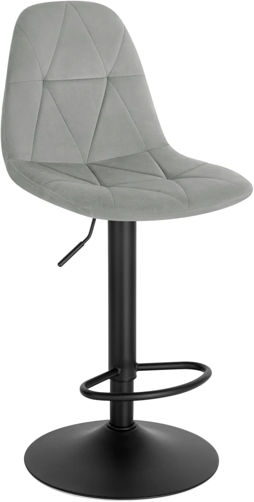 Barová židle Lestarain, jednoduchá nastavitelná a otočná, snídaňová, kuchyňská linka, hospodská barová židle, světle šedá, měkká sametová barová židle, jídelní židle s opěradlem a podnožkou