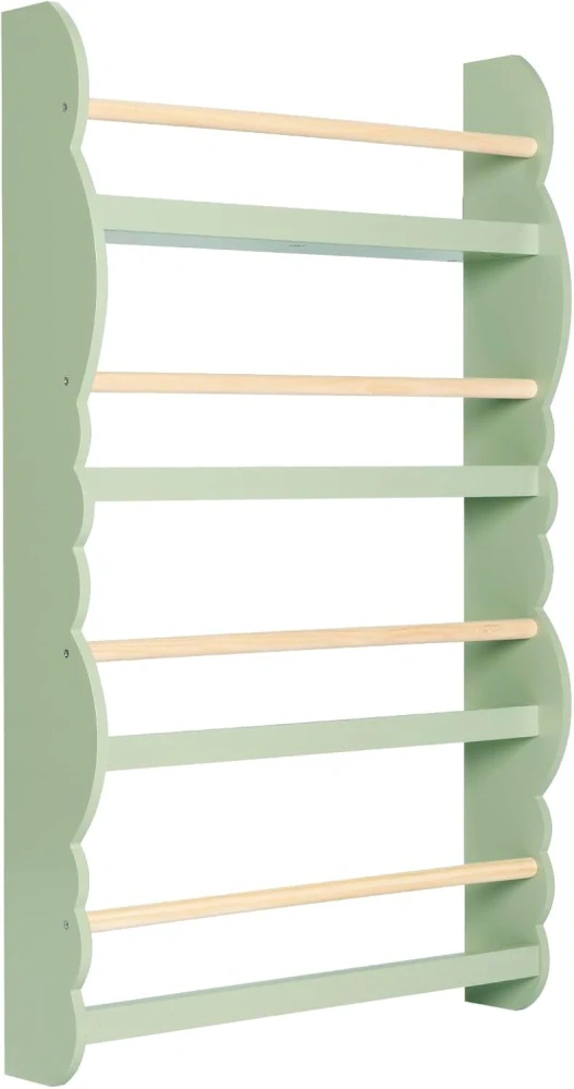 Dětská knihovna WOLTU nástěnná police, 4patrový úložný stojan na dětskou poličku, dřevěný organizér na knihy do dětského pokoje, zelená