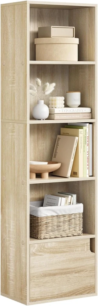 - VELKÁ KAPACITA: Knihovna má celkem 5 přihrádek (každá o výšce 24,5 cm). 4 otevřené přihrádky jsou ideální pro knihy a dekorace. Spodní přihrádka s dvířky a magnetickým uzávěrem vytváří prachotěsný prostor.
