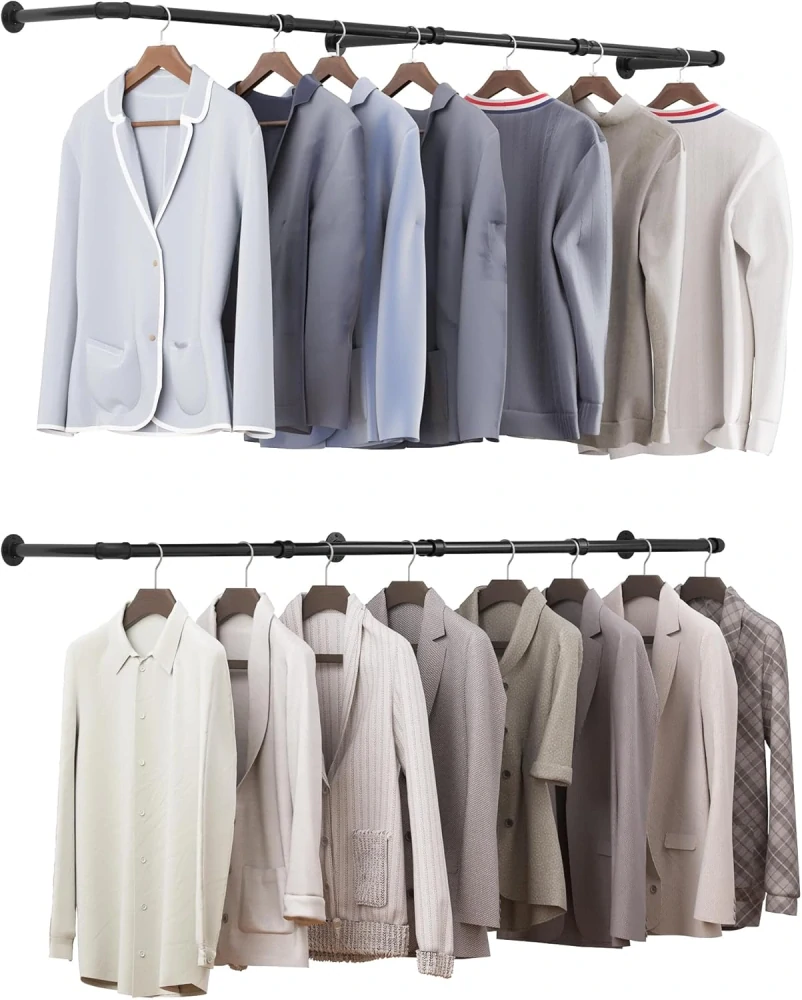 eSituro SGR0129-2 věšák na šaty Sada 2 vyjímatelných věšáků na oblečení v průmyslovém designu nástěnný černý kov 180 cm