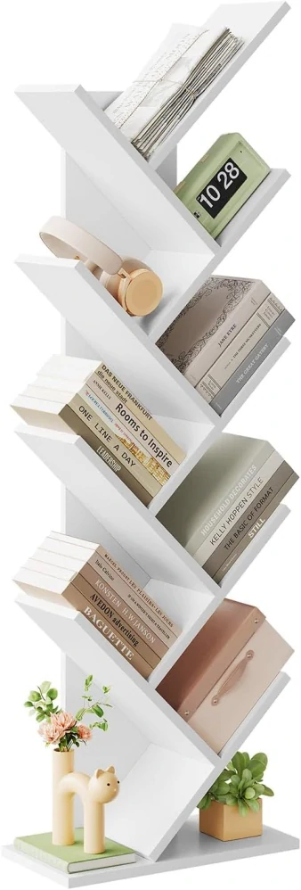 - Stromová struktura: 9patrová knihovna měří 127 cm. Jeho tvar připomínající kmen stromu ukazuje vitální krásu. S moderním designem v čistě bílé barvě je knihovna vhodná do pracovny, ložnice, dětského pokoje atd.