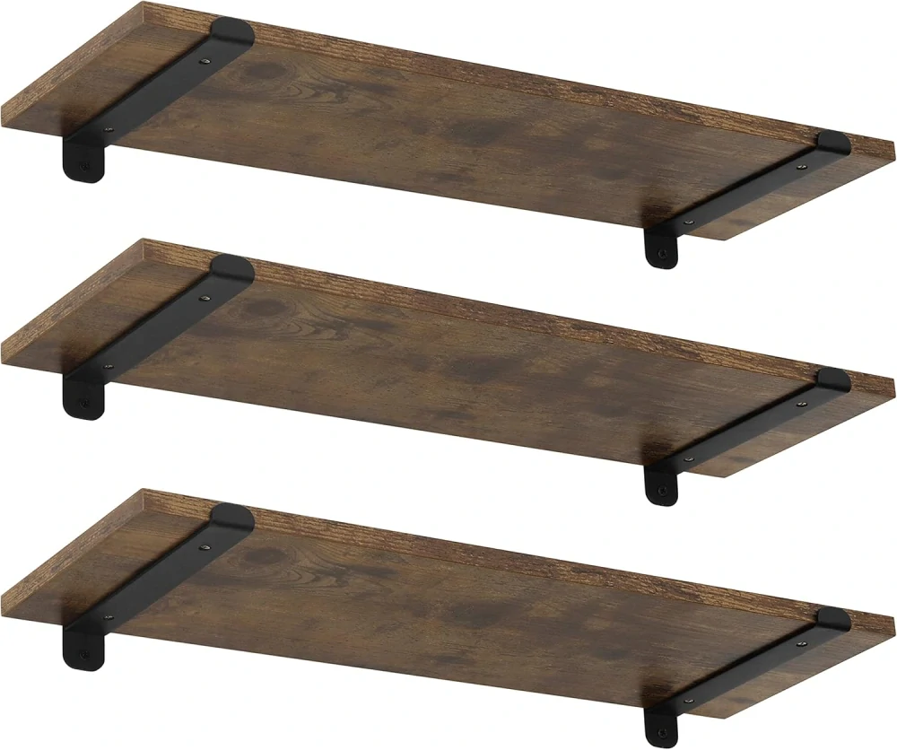 EUGAD 0295QJ Sada 3 plovoucích nástěnných polic Dřevo 60x7x20cm Max. nosnost 15kg/úroveň Plovoucí police pro obývací pokoj Kuchyň Koupelna