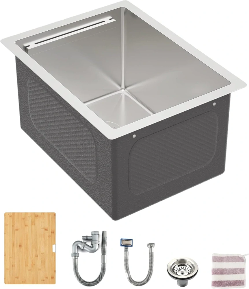 KORVO Pracovní stanice Kuchyňský dřez pod montážní mísa s pracovním výstupkem 16 T-304 Nerezová ocel, včetně bambusového prkénka, 37 x 48 cm