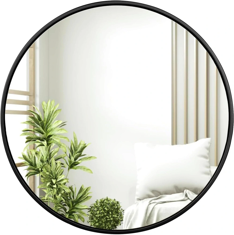 - MINIMALISTICKÝ A LUXUSNÍ DESIGN Toto kulaté zrcadlo je vyrobeno z vysoce kvalitního lakovaného kovového rámu, který je hladký na dotek, odolný proti vyblednutí a vykazuje elegantní linie. Úzký rám nejen chrání zrcadlo, ale také mu umožňuje vizuálně se vznášet na zdi, což je odolné a zároveň moderní a estetické.
