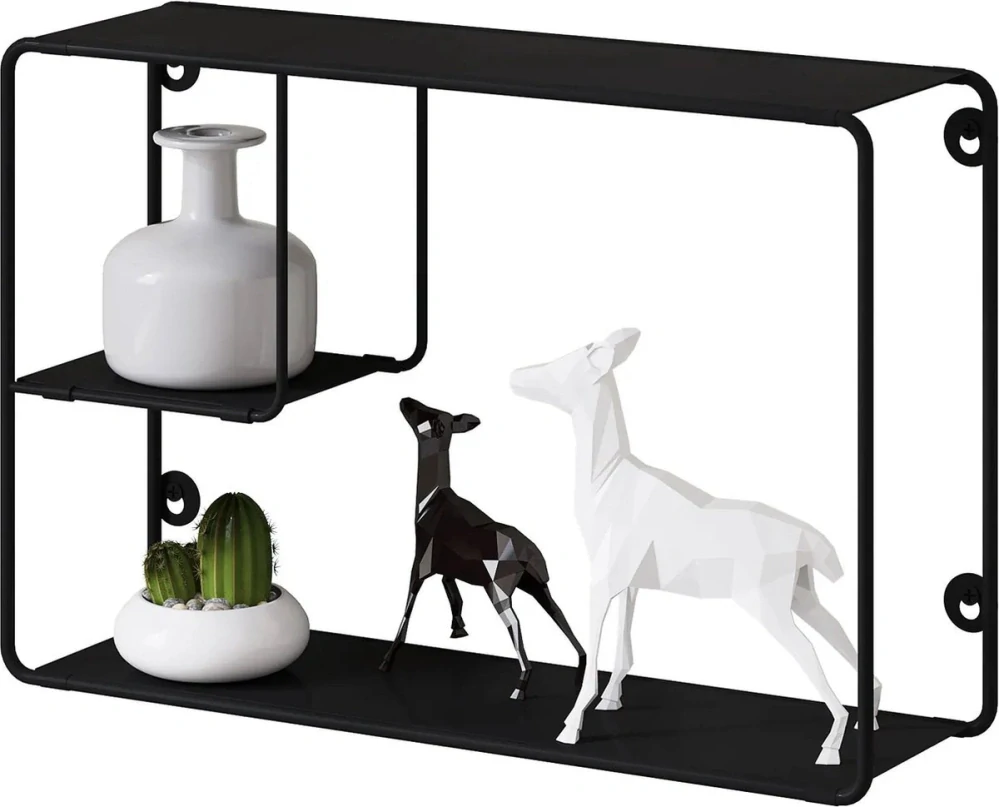Černá kovová povrchová úprava nástěnného stojanu dodává industriální a moderní vzhled, který se perfektně hodí do každé místnosti. Elegantní a minimalistický design z něj dělá všestranný kousek na každou stěnu.