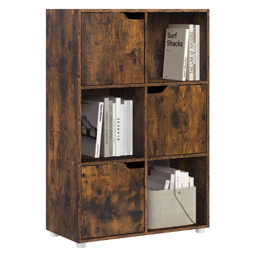 police na knihy do výstavního prostoru se 3 dvířky, MDF, 6 přihrádek, 59,7 x 29 x 91 cm