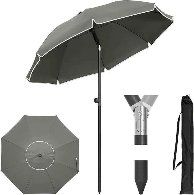 - Přenosný a snadno sestavitelný: skládací slunečník je lehký a dodává se s přepravní taškou. Pro sestavení jednoduše připojte horní a spodní tyč k otočnému knoflíku – není potřeba žádné nářadí, pro okamžitou ochranu před sluncem kdekoli.