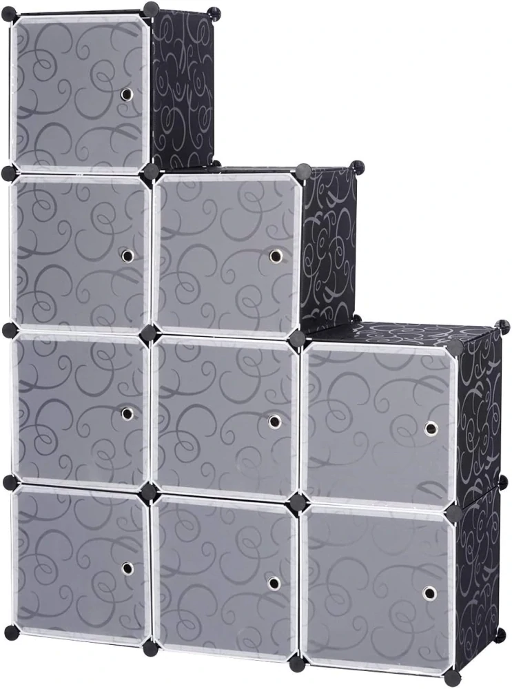 Stojan na boty WOLTU, organizér na 9 kostek, DIY do sebe zapadající plastová police na knihy, stojan na boty, organizér na hračky, černá SR0055sz