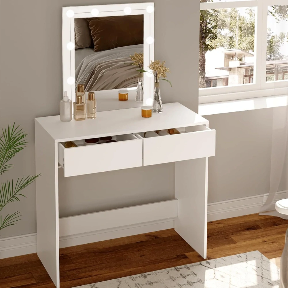 - VELKÁ KAPACITA: Díky velké pracovní desce o rozměrech 80x39,5 cm a 2 zásuvkám vám tento toaletní stolek se zrcadlem a osvětlením umožní uspořádat si produkty péče o pleť a kosmetiku, šperky, parfémy a doplňky všeho druhu a zajistit tak větší pořádek.