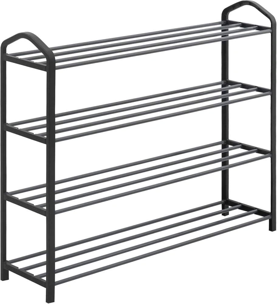 OLTU 4vrstvý kovový stojan na boty Úložné police Malý organizér pro 16 párů bot, černý SR0020sz4-1