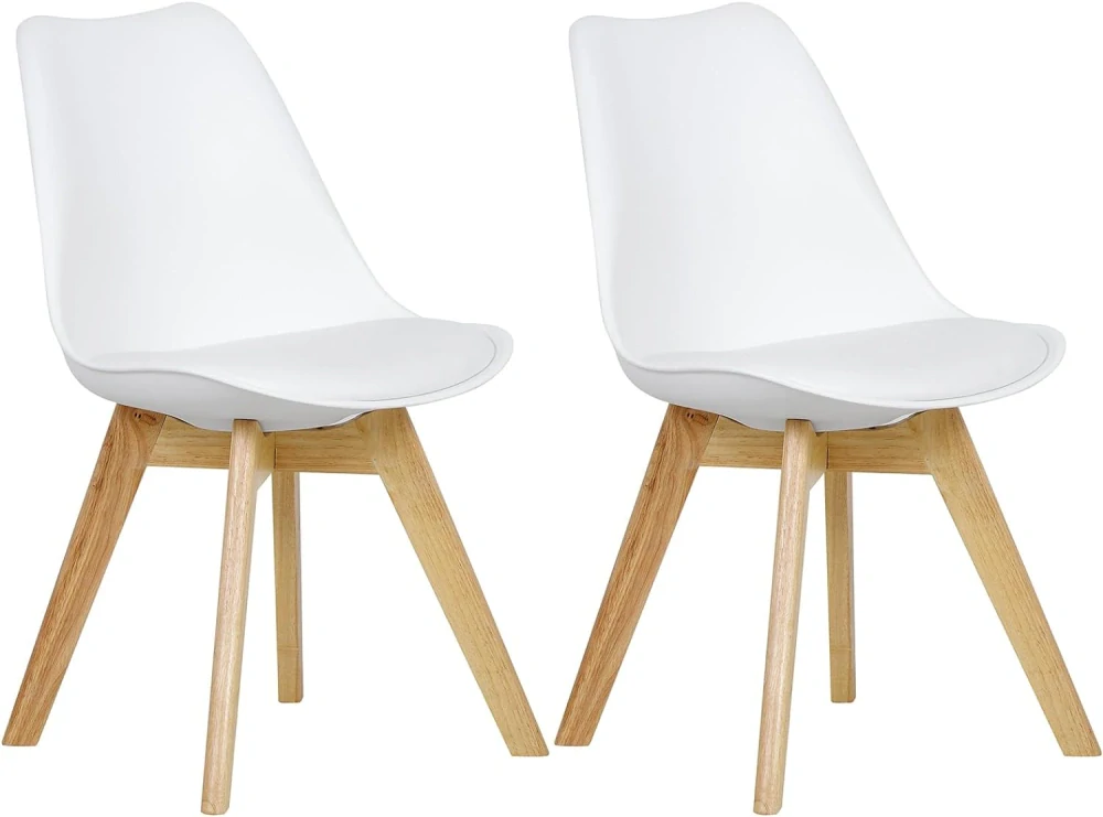 WOLTU BH29ws-2 2 jídelní židle do kuchyně/obývacího pokoje, umělá kůže a masivní dřevo, bílá