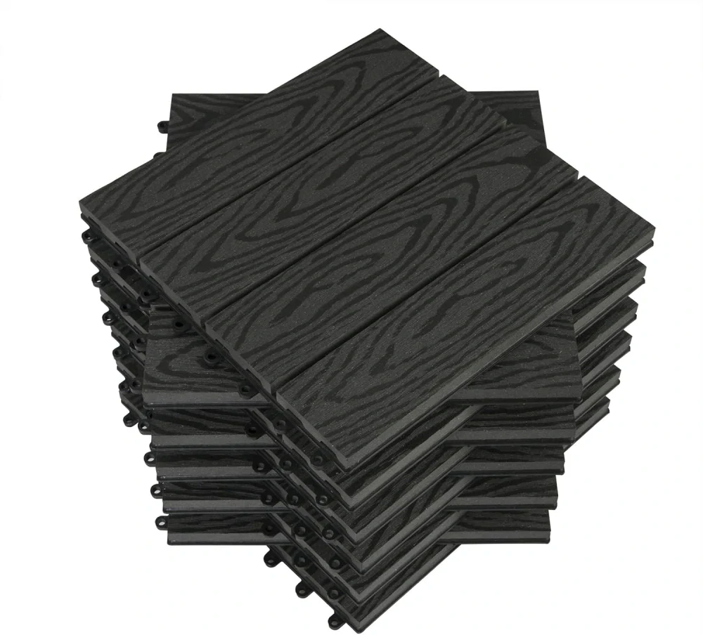 WOLTU GTF002an WPC podlahové dlaždice 30 x 30 cm pro venkovní zahradní terasu kompozitní dřevo-plastový zásuvný systém, antracit (11 kusů/1 m²)