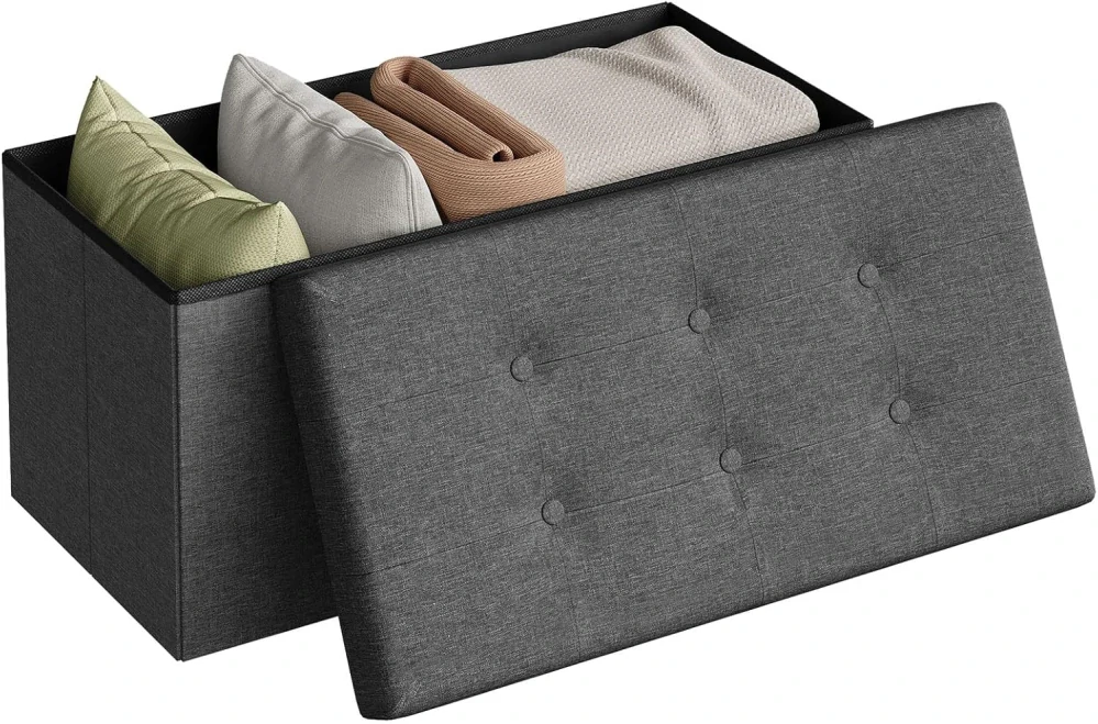 WOLTU SH10dgr-1 Skládací úložný stolek Úložná truhla Odnímatelné víko Povlečení Polstrované sedátko Tmavě šedá 76 x 37,5 x 38 cm