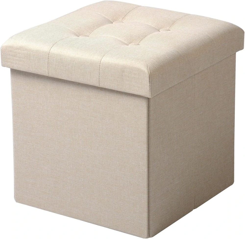 WOLTU SH06cm-1 skládací úložný prostor Ottoman s odnímatelným víkem, lněné polstrované sedadlo, 37,5 x 37,5 x 38 cm (d x š x v), krémově bílá